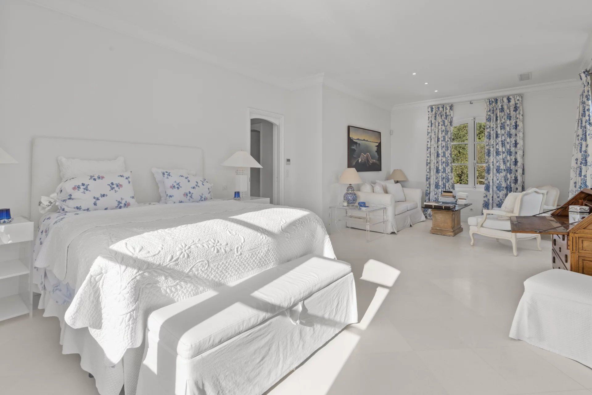 Cette propriété d’exception allie parfaitement élégance, calme et prestations haut de gamme. La maison principale, une superbe bâtisse d’environ 550 m², a été pensée dans les moindres détails pour offrir un confort absolu. Elle dispose de deux grandes suites, de plusieurs salons lumineux aux volumes généreux, d'espaces de réception accueillants, et d'une cuisine entièrement équipée avec des matériaux de qualité.