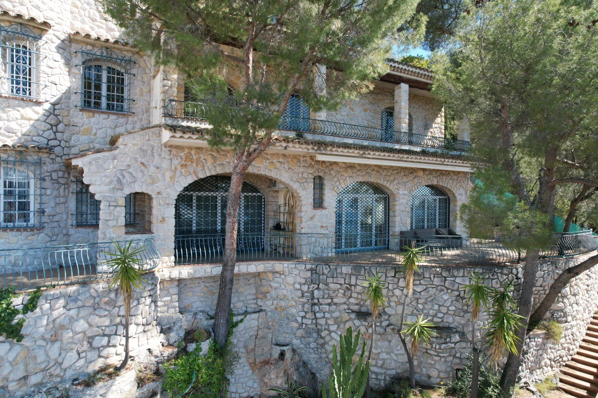 Spanning approximately 290 sq m, the villa is served by a lift, is air-conditioned, and features beautiful stone construction spread over two levels with terraces. The property comprises a spacious reception room with a fireplace, opening onto a terrace with views of the Baie des Anges and the port, a dining room, a large, fully-equipped kitchen, a study, and a cinema room that could easily be converted into an additional bedroom.
