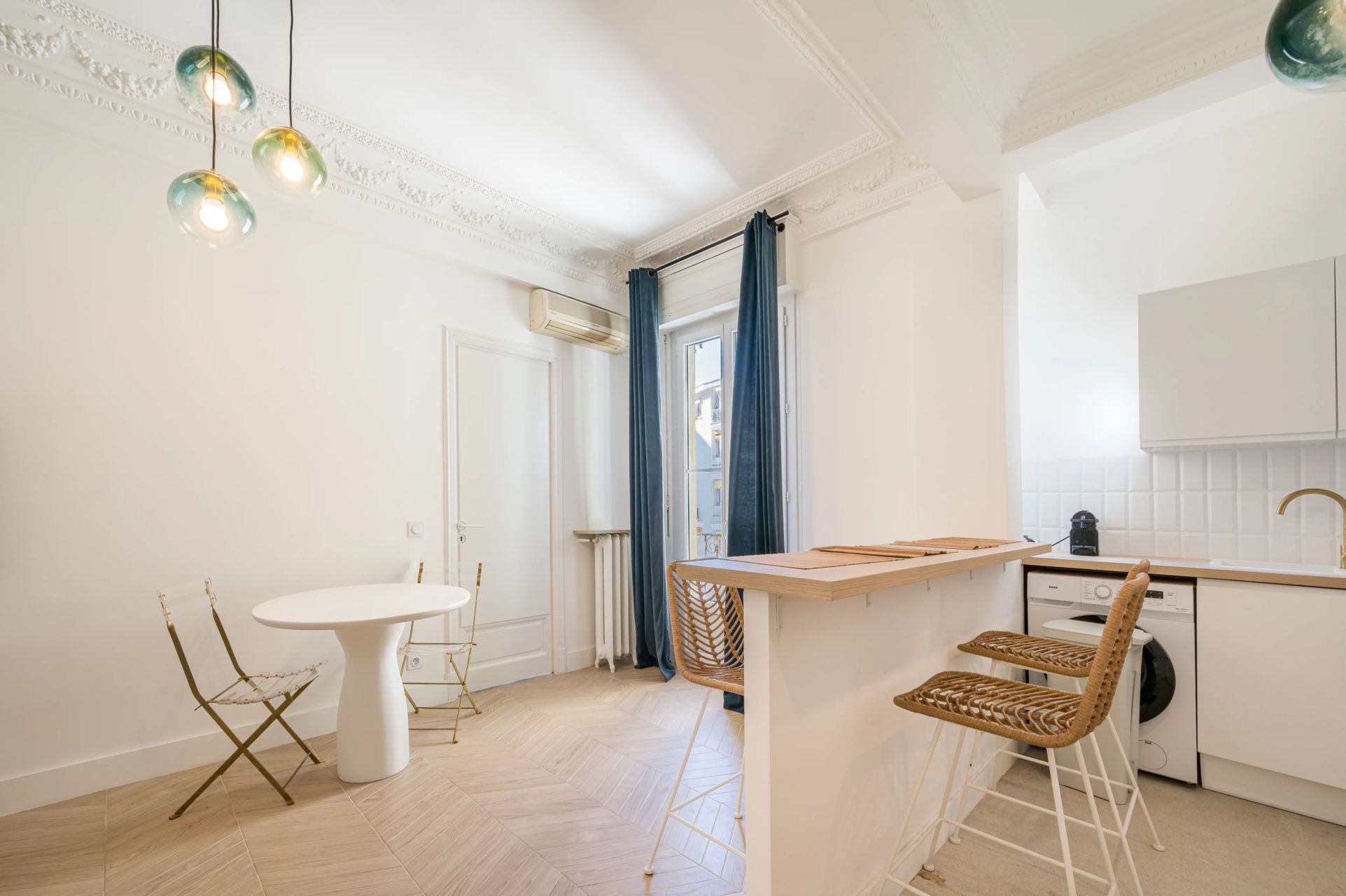 JOFFRE – Carré d’Or – Charming renovated two-room apartment on the top floor, fifth floor.