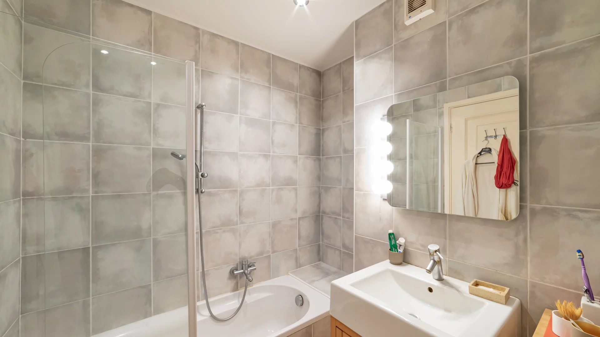 The sleeping quarters include two large bedrooms, each with its own en-suite facilities: one with a bathroom and WC, the other with a shower room and WC. Both bedrooms enjoy direct access to a second private terrace, ideal for unwinding in peace and quiet.