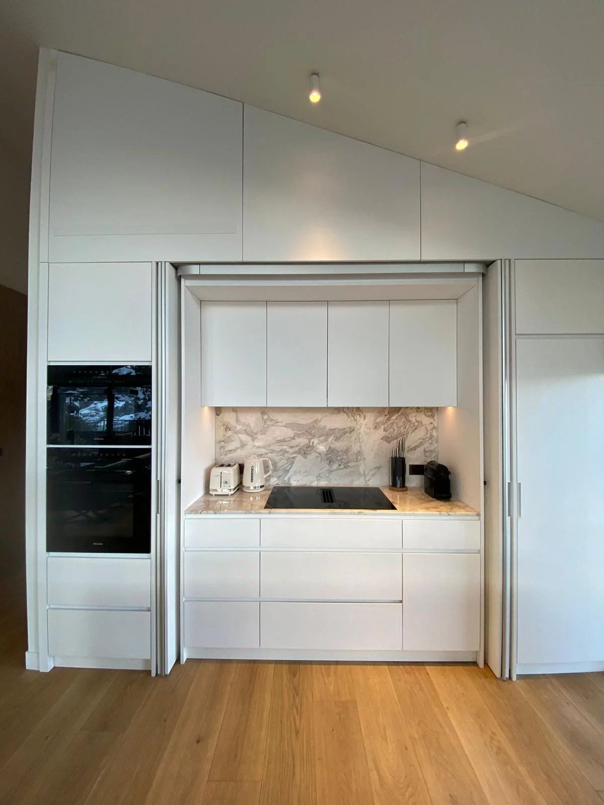 This luxurious penthouse features a spacious, light-filled living area with breathtaking panoramic views of Courchevel and the surrounding