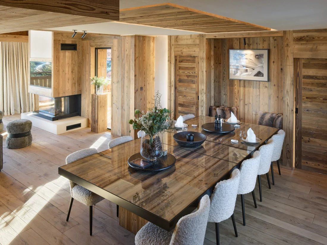 The chalet boasts a luxurious swimming pool, a sauna, a hammam, a relaxation area, a massage room, a fitness room, and a cinema room.