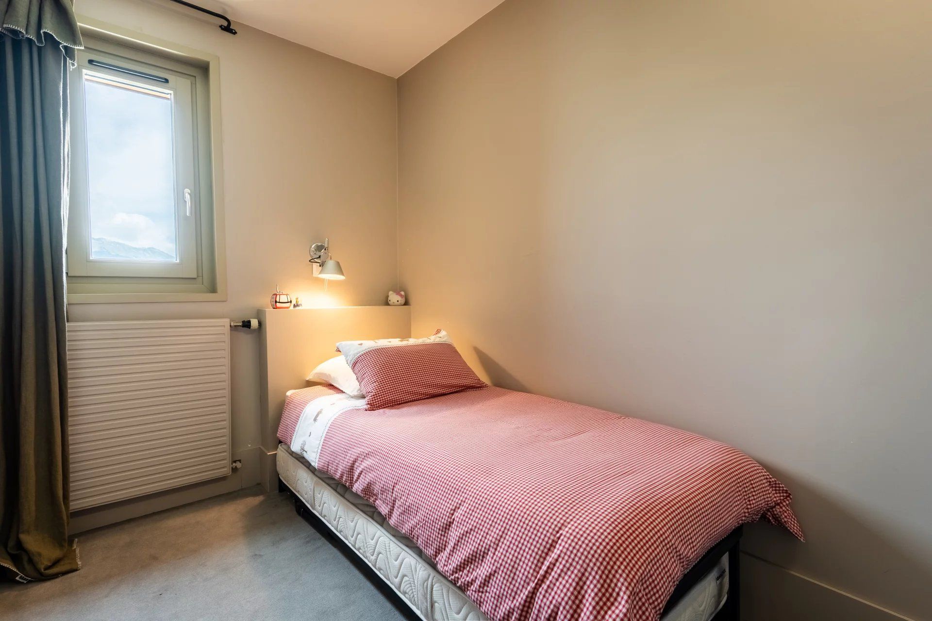It comprises a large living room with open kitchen opening onto a south-facing balcony, a bedroom with its own shower room and toilet, a double bedroom, two cabin bedrooms, an office, a laundry room, a bathroom and an independent toilet.