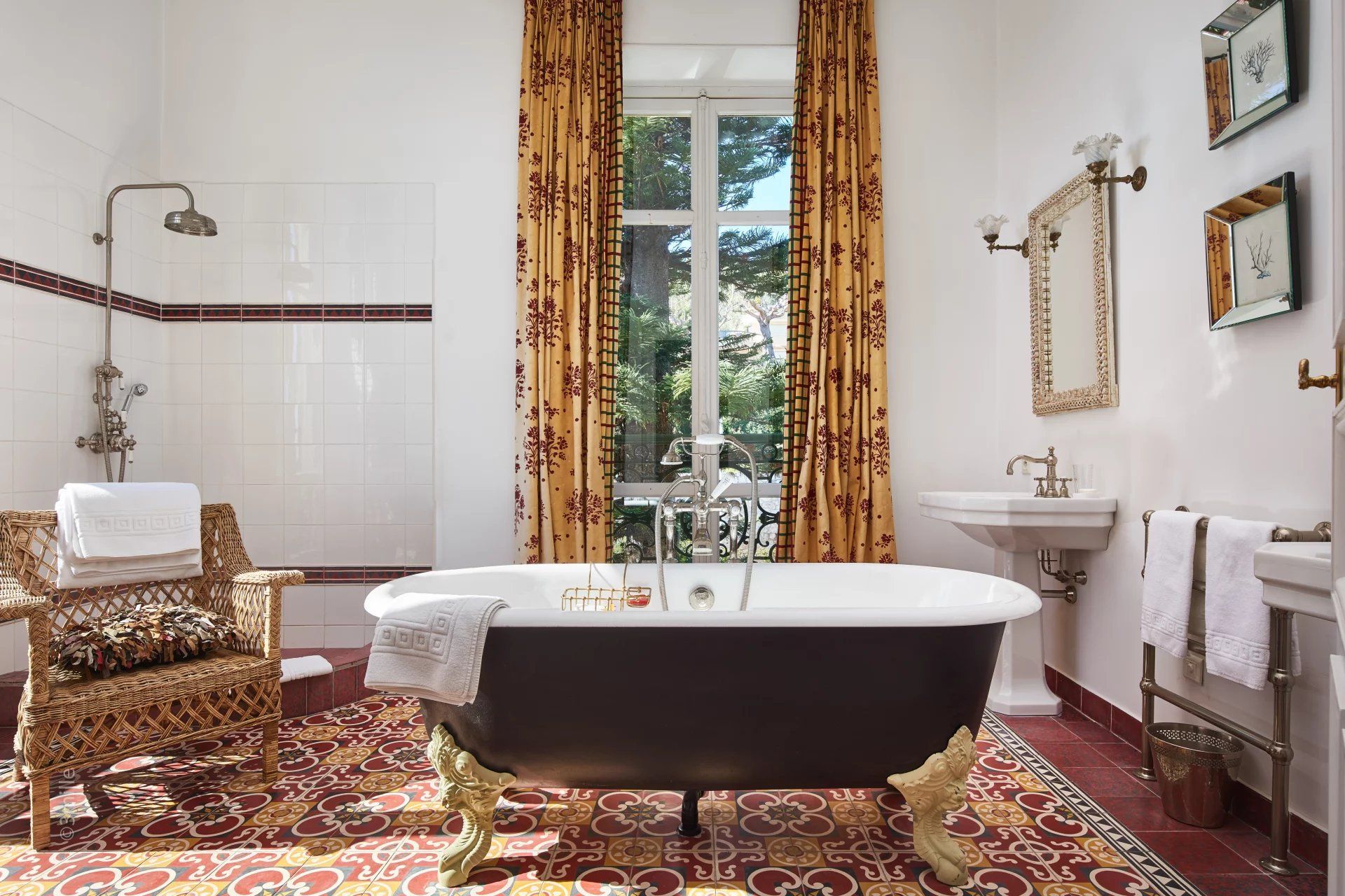 The interior is distinguished by a refined decor style, showcasing different hand-painted tiles in each bedroom, all offering stunning sea views. Each room possesses its own style while maintaining a cohesive aesthetic, creating a warm and inviting atmosphere.