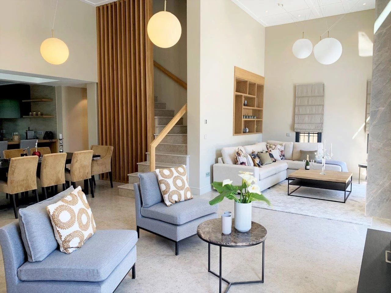 Flat landscaped grounds of approximately 1,500m² with a heated swimming pool, benefiting from a counter-swimming option and covered parking for two cars complete this stunning property for rent.