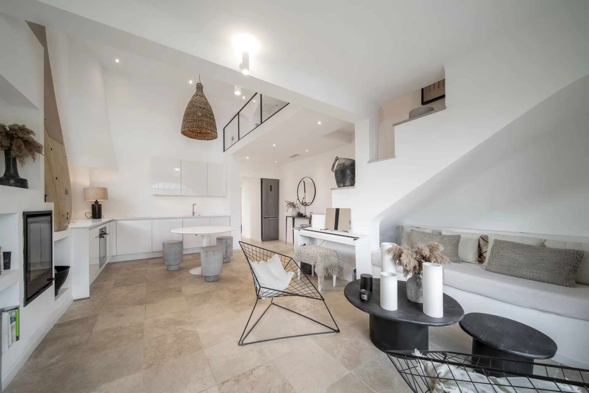 This charming accommodation of approximately 58 sq m features on the ground floor: an entrance hall with toilet, a reception room with dining area and open plan kitchen, all leading onto a balcony, as well as a double bedroom with en suite bathroom. A further double bedroom is situated on the first floor.