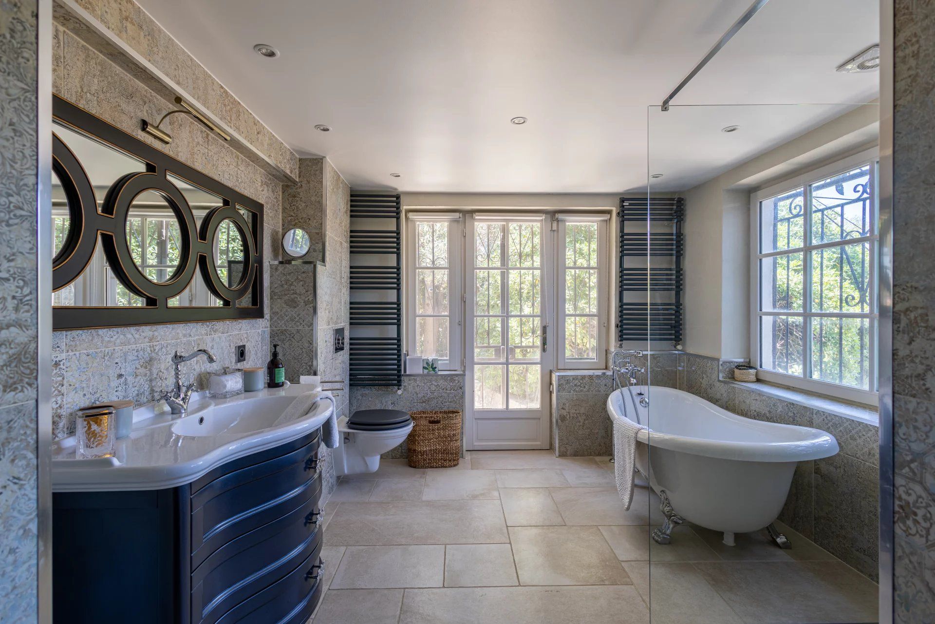 A subtle blend of old stone, vintage furniture and tasteful decoration, this property features a summer reception room with its fully equipped kitchen opening onto a spacious terrace and the pool, a second reception room, a dining room, a magnificent kitchen, as well as five en suite bedrooms and two laundry rooms.