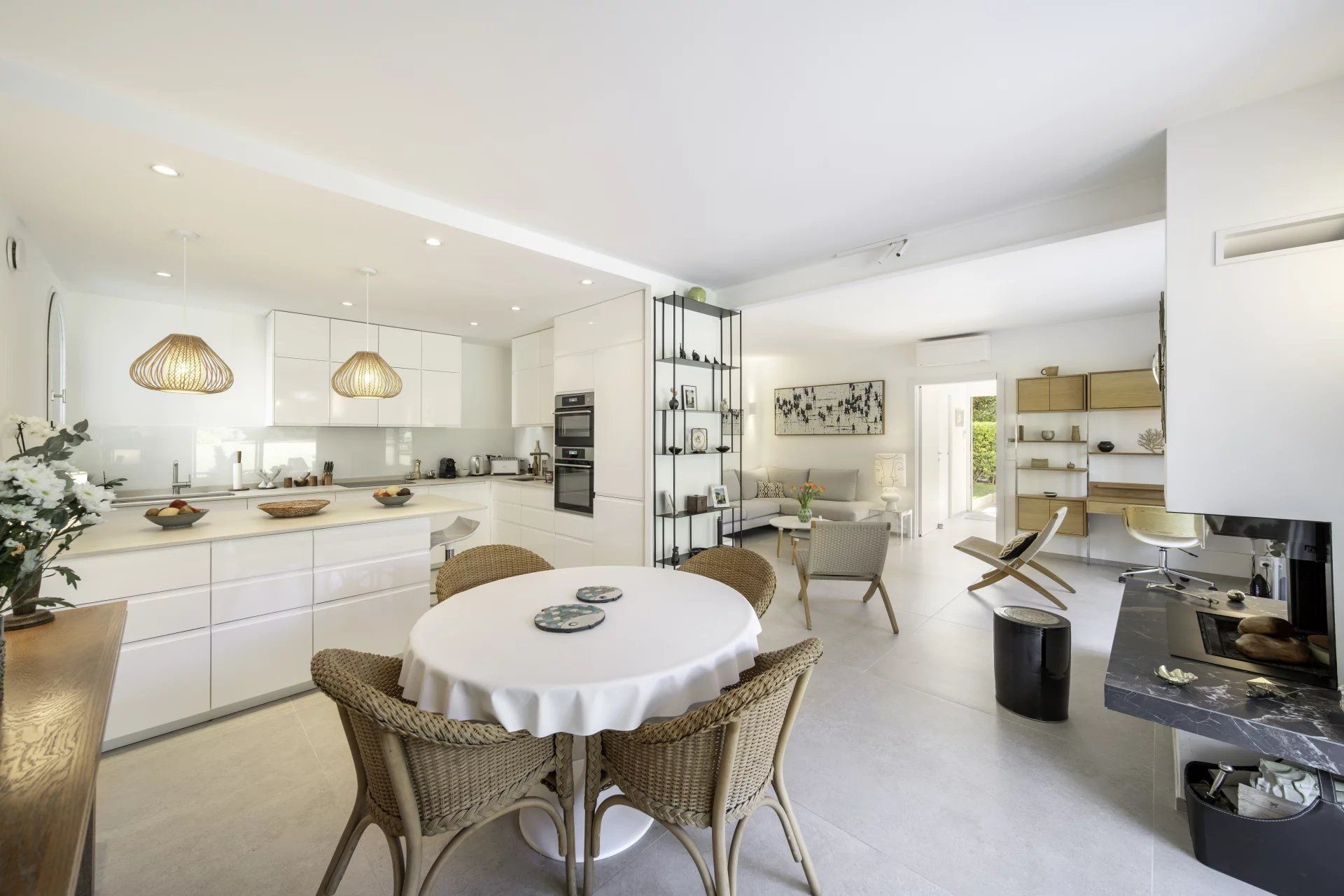 The apartment features a bright reception room opening onto a 70 sq m terrace and a beautiful 350 sq m private garden, a dining room, a fully fitted contemporary kitchen, three bedrooms, a bathroom, two shower rooms and a separate toilet.