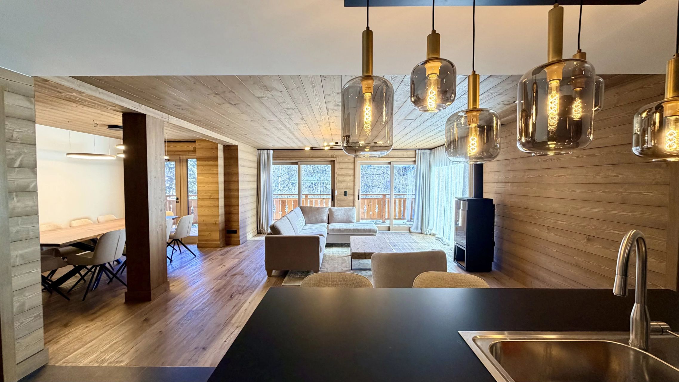 This new 152 sq m apartment is located in an intimate two-family chalet in a quiet, secure area, right next to the slopes and the center of Méribel.