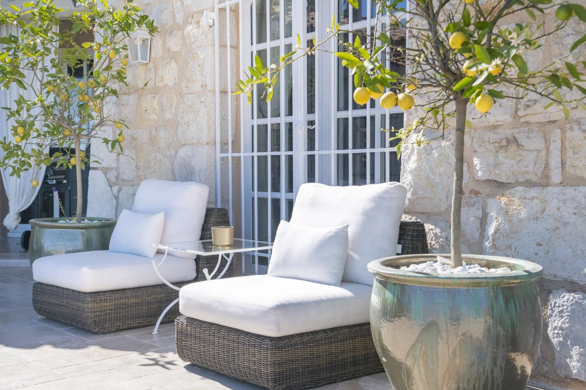 The main villa includes a spacious living room with an adjoining dining room opening onto a beautiful terrace, a fully equipped kitchen, an office, five en-suite bedrooms, a cinema room, a fitness room and a beautiful wine cellar.