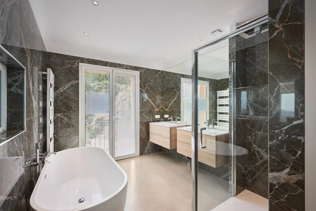 Completely renovated, the air-conditioned villa comprises a living room with uninterrupted views, an open-plan kitchen, a convivial dining room and five en suite bedrooms, one with a private terrace, each with its own bathroom or shower room and toilet. You will also appreciate the heated swimming pool with outdoor shower, as well as the garden and private parking space.