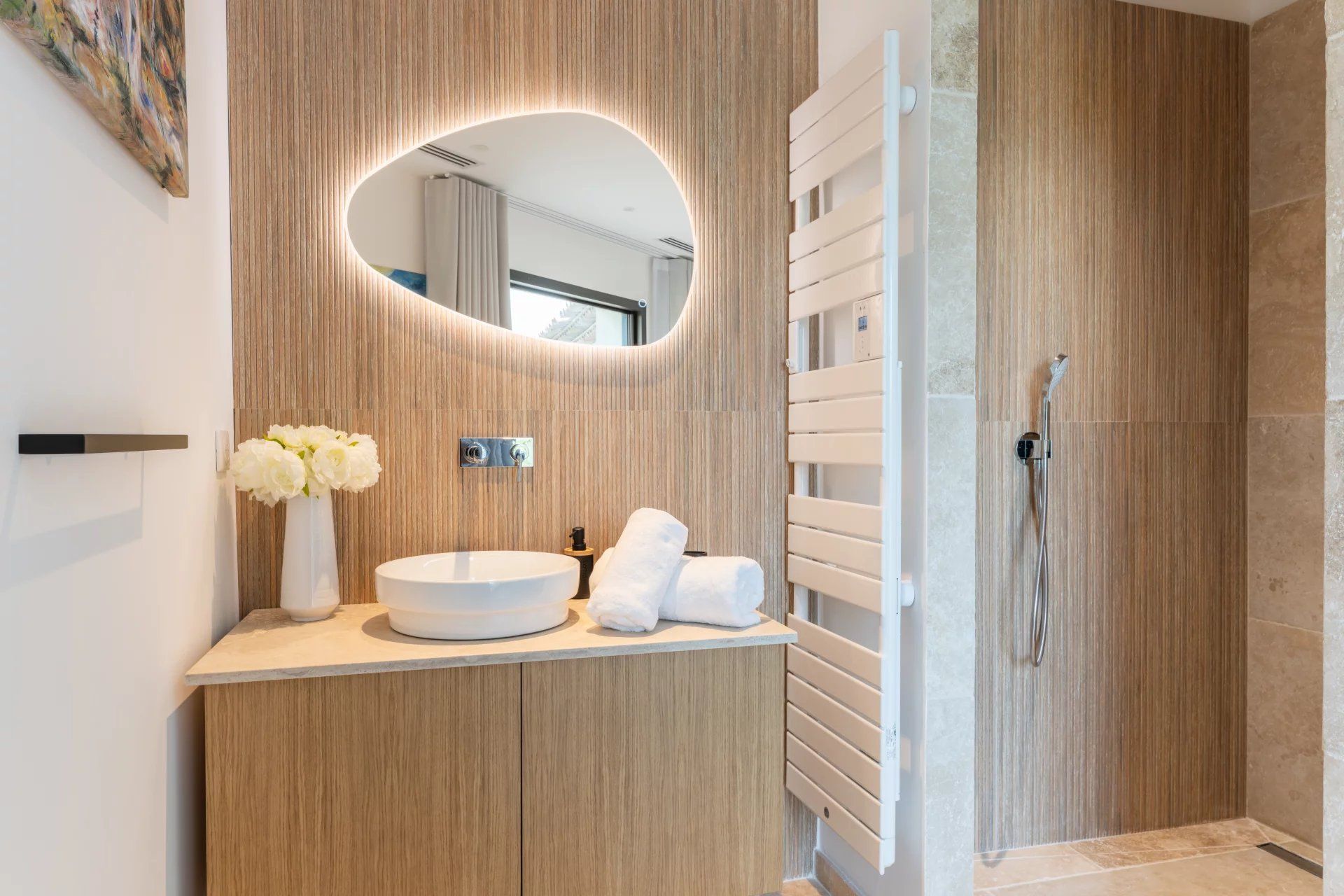 On the first level, a majestic primary bedroom welcomes you with its private terrace, opulent dressing room and luxurious bathroom equipped with bath, shower and toilet. Two further bedrooms, each with its own shower room, dressing room and toilet, also benefit from access to a private terrace.