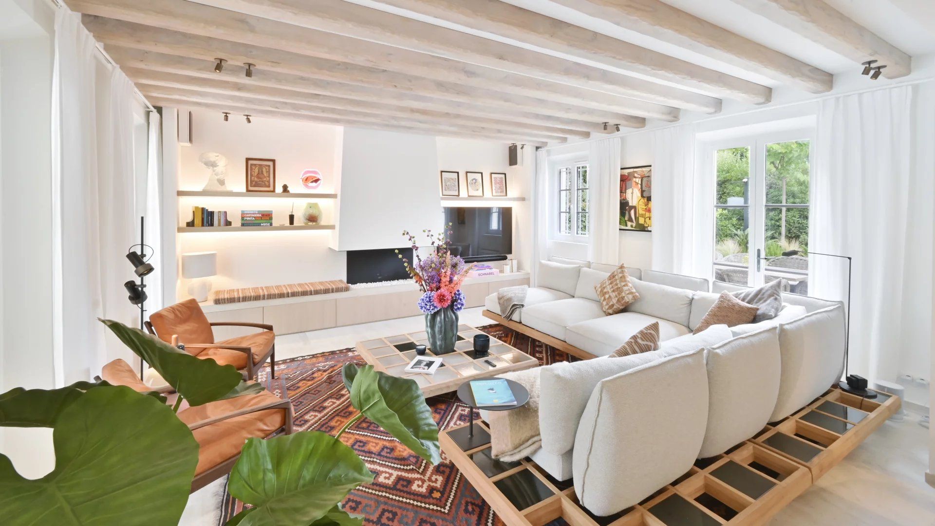 The first floor houses a sumptuous master bedroom with dressing room and en suite shower room. The staircase leads to the upper floor, where there are three further bedrooms, one of which has a balcony, each with its own en suite shower room and dressing room.