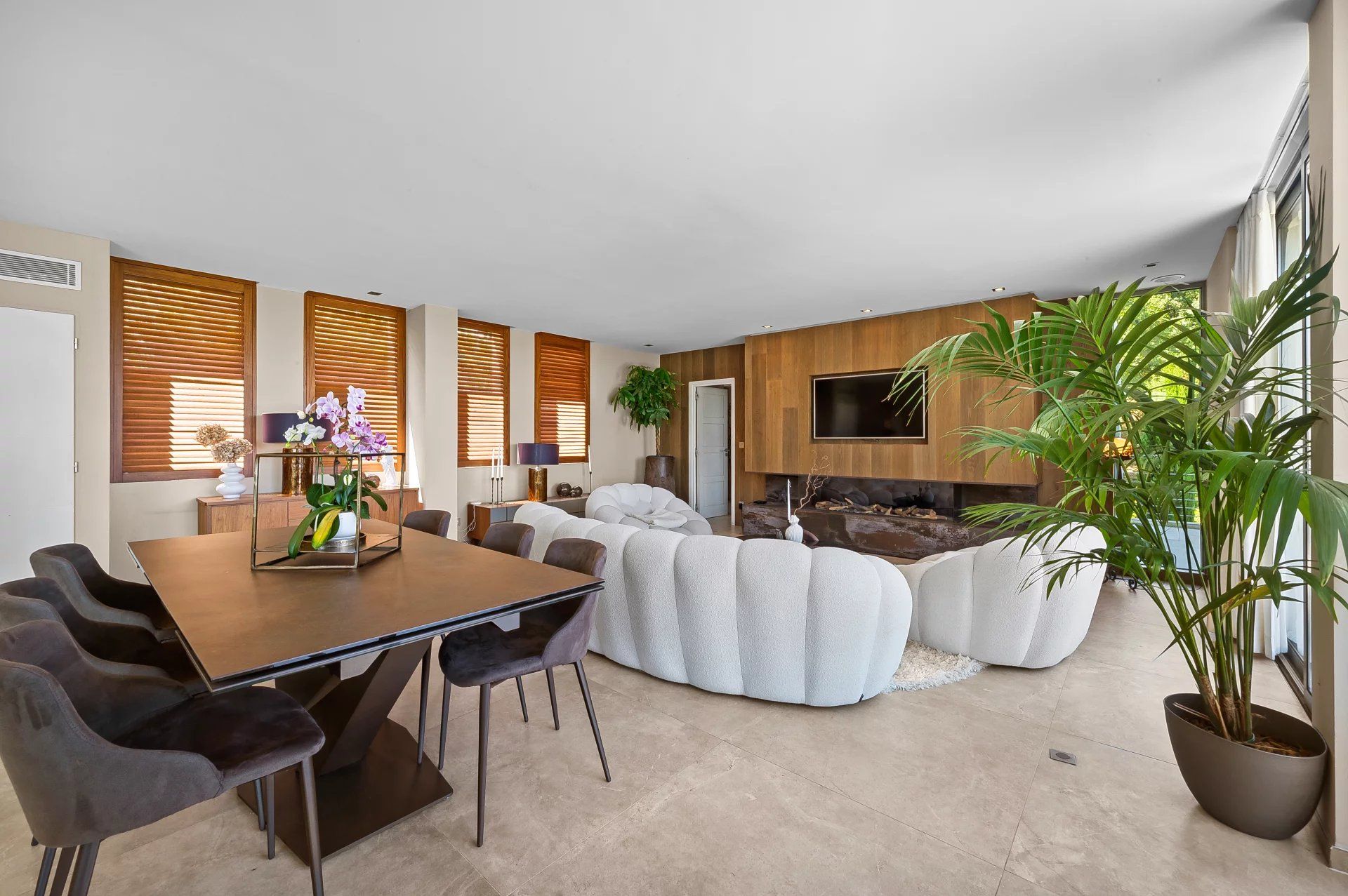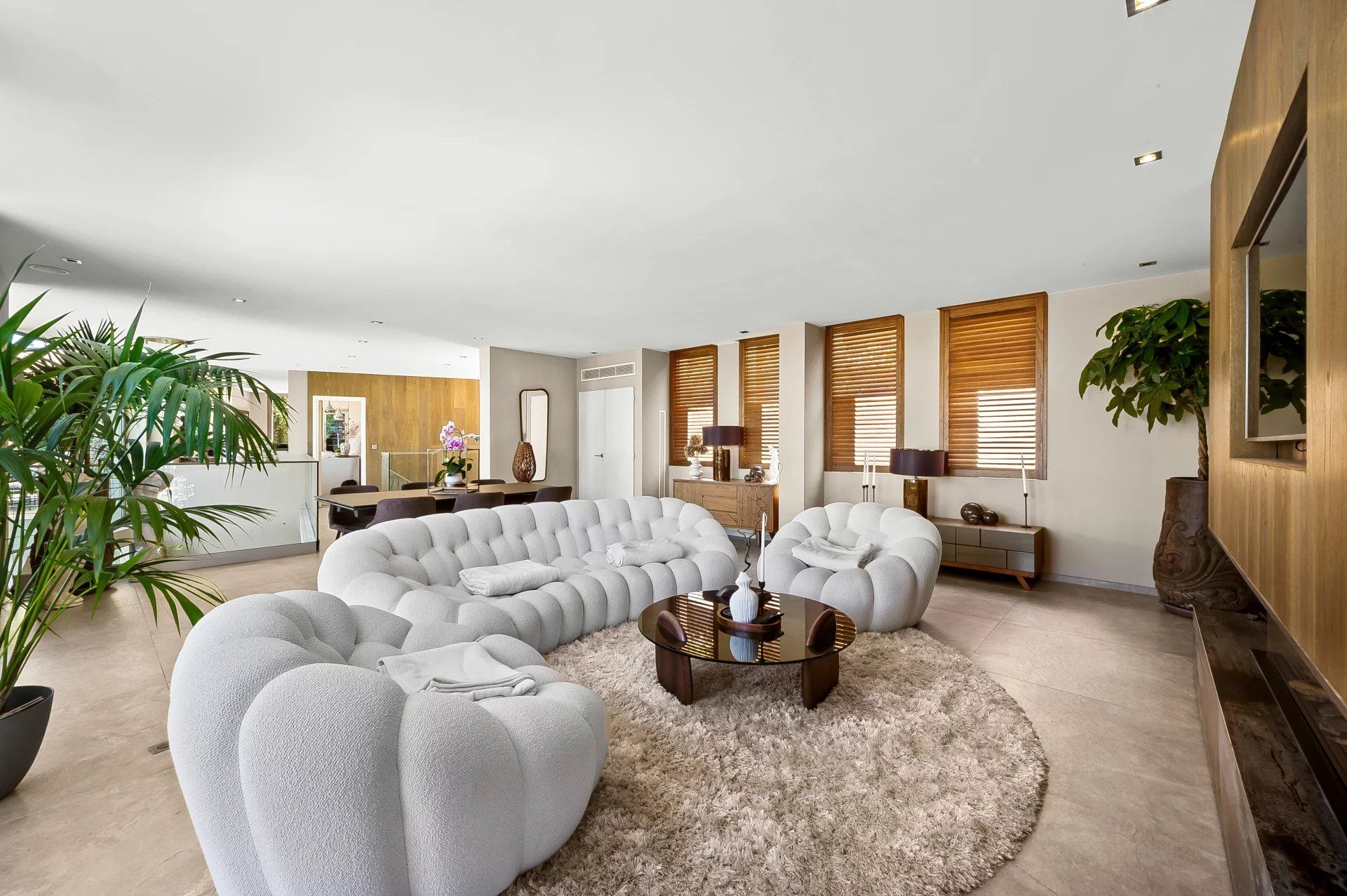 Ideally located in a residential area within easy reach of l'Escalet beach and close to Pampelonne, this contemporary villa offers an intimate, leafy setting with uninterrupted views over the surrounding countryside. Spread over two levels, the property has a total floor area of around 370 sq m, including 80 sq m of outdoor terraces (subject to verification).