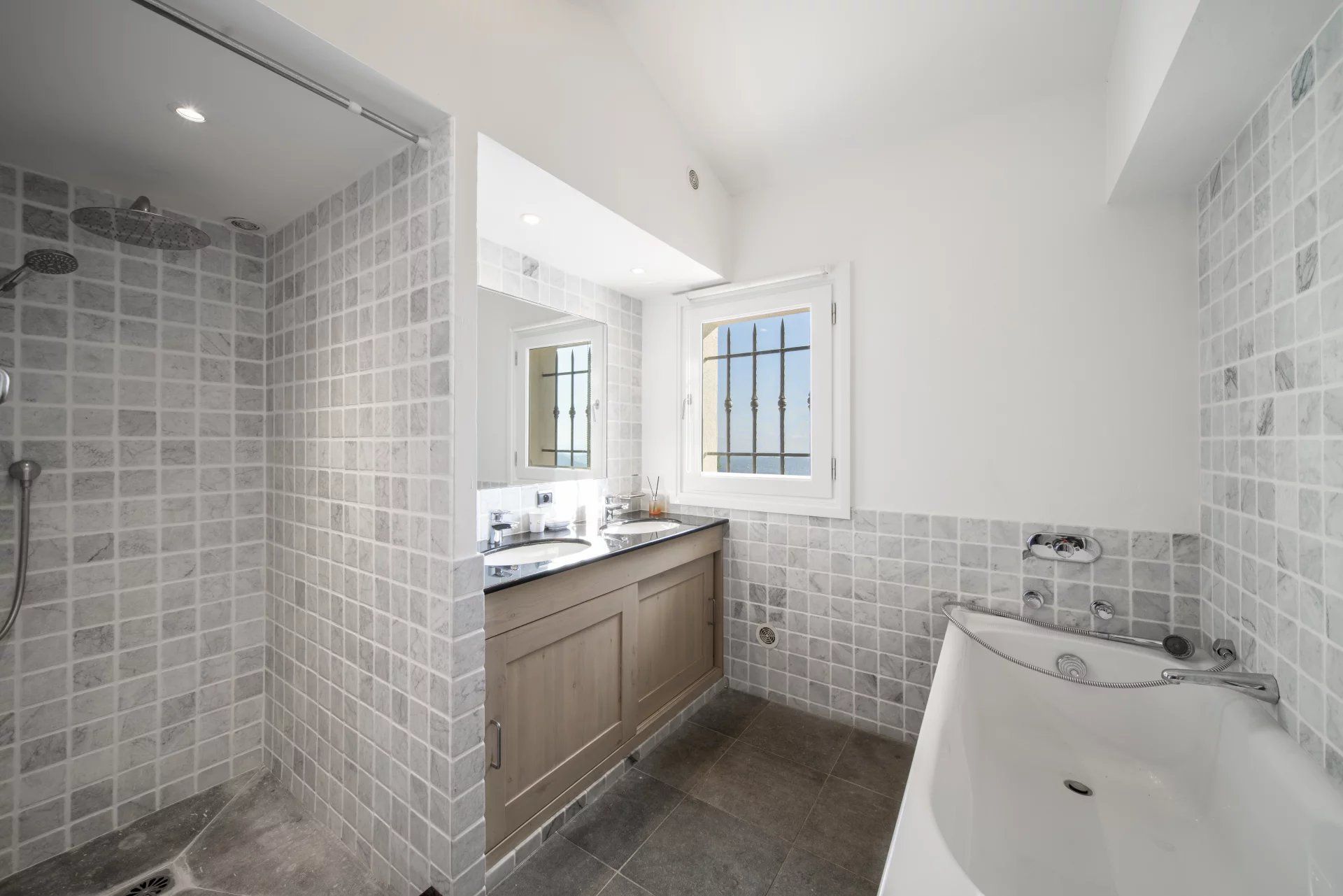 This magnificent Côte d'Azur property offers a serene and picturesque setting, with breathtaking panoramic views of the mountains and the Mediterranean Sea.