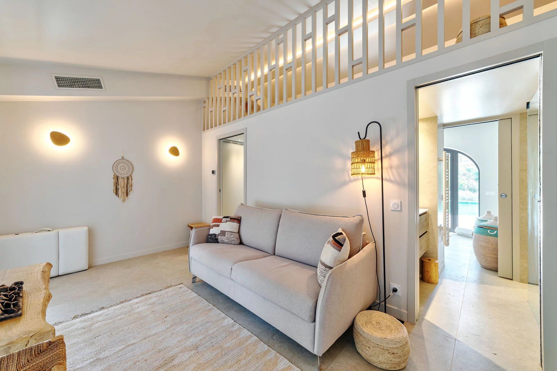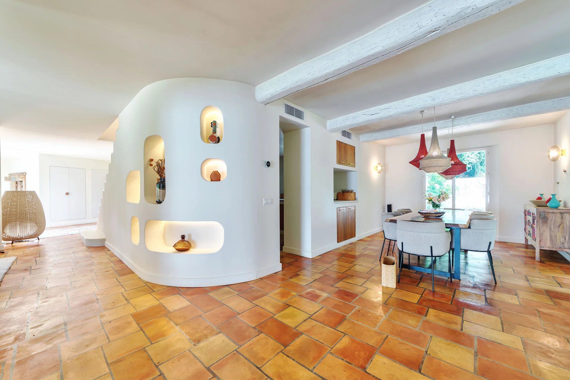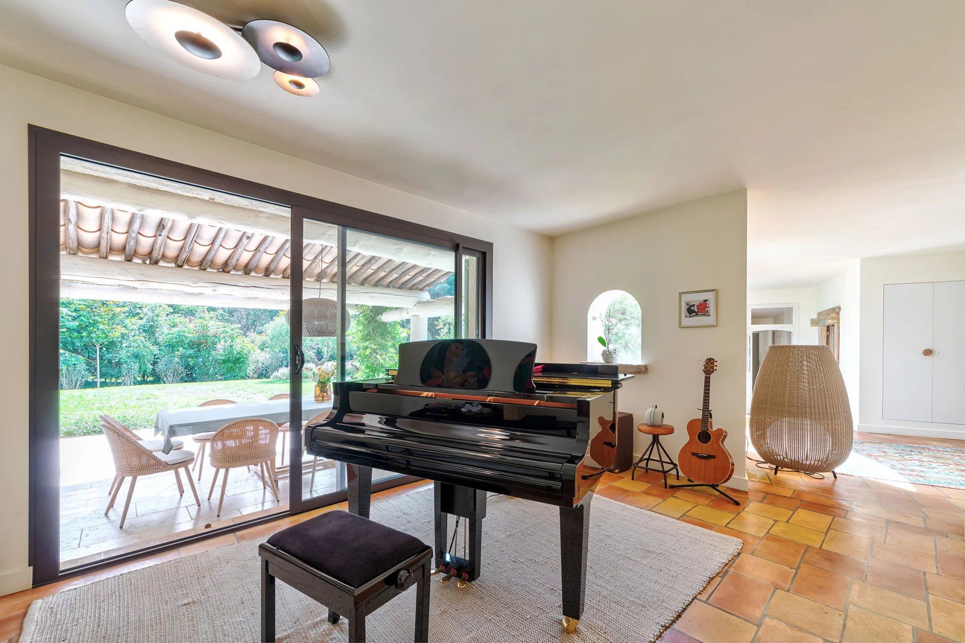 Sole-agent. Experience the allure of this charming 300 sq m villa, where timeless design meets a Provence atmosphere infused with a Scandinavian twist. Nestled in a serene green setting, it's an idyllic retreat for those seeking relaxation and rejuvenation. The generous accommodation boasts a welcoming entrance hall and an expansive, light-filled living room that seamlessly opens onto multiple terraces, perfect for lounging or dining al fresco in the gentle Mediterranean breeze.