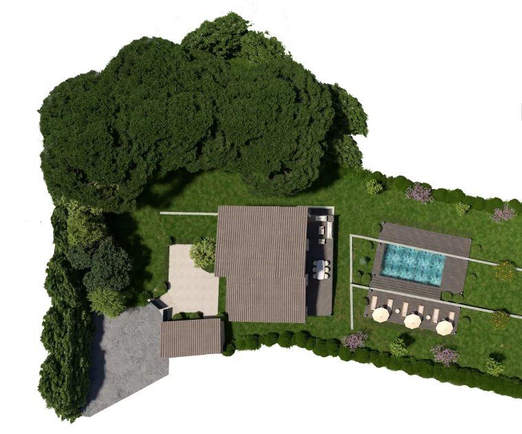On the garden level, the property includes a technical room for the pool, a pool house, and an independent WC.