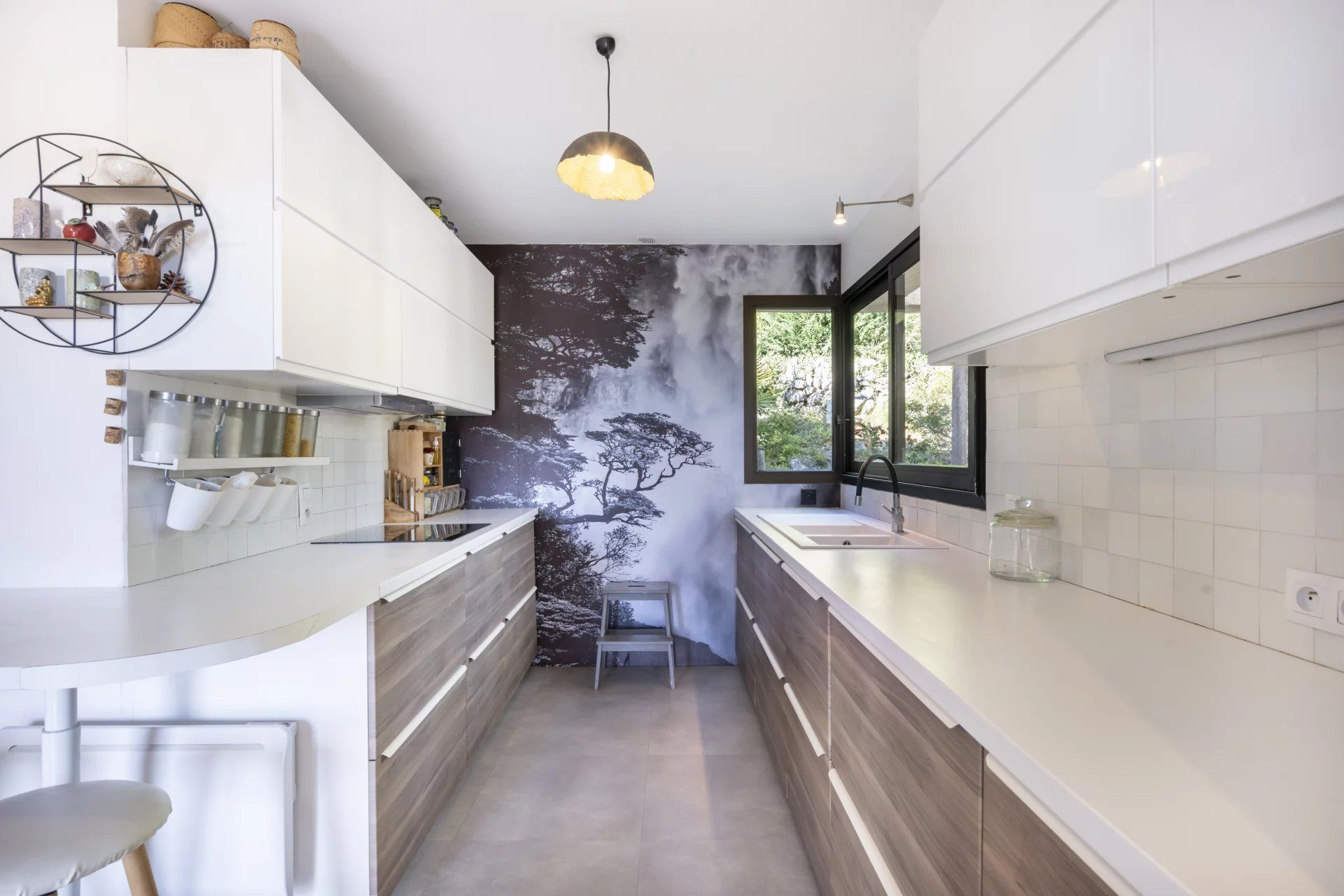 From the moment you enter, a spacious living area bathed in light establishes itself as the heart of the home. Large sliding glass doors erase the boundaries between indoors and outdoors, creating a seamless connection with the garden and surrounding landscapes. Exposed beams, a hallmark of Provençal charm, add authenticity and character to this convivial space where elegance and warmth meet.