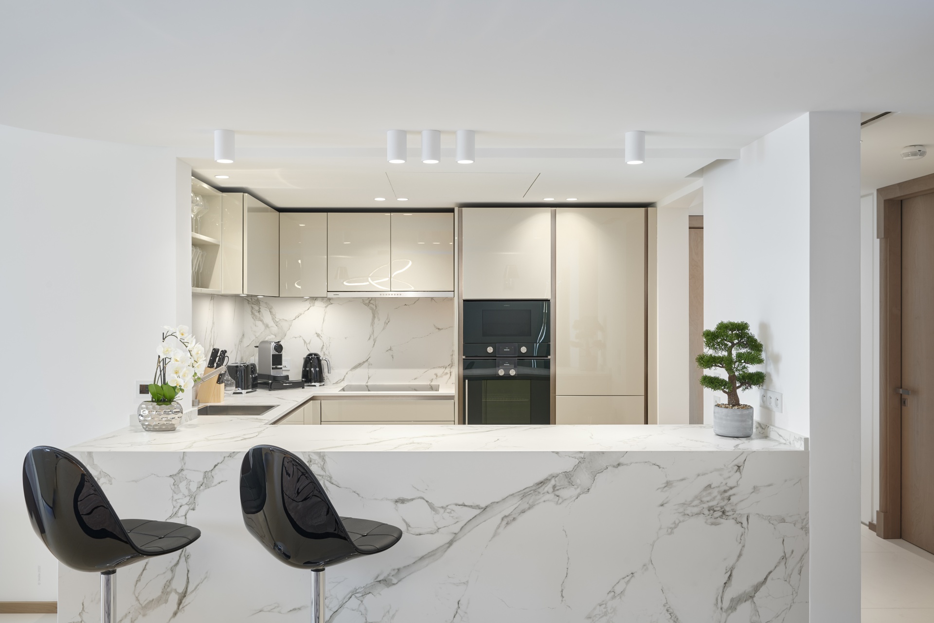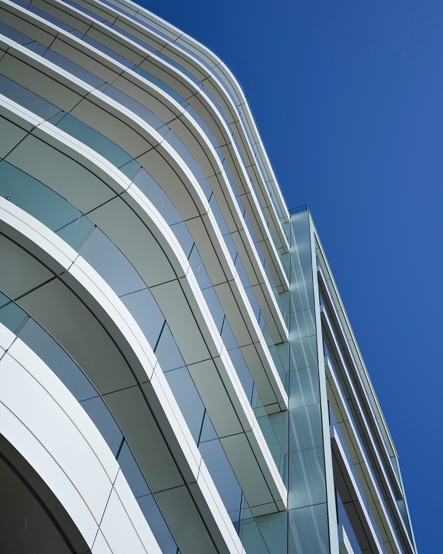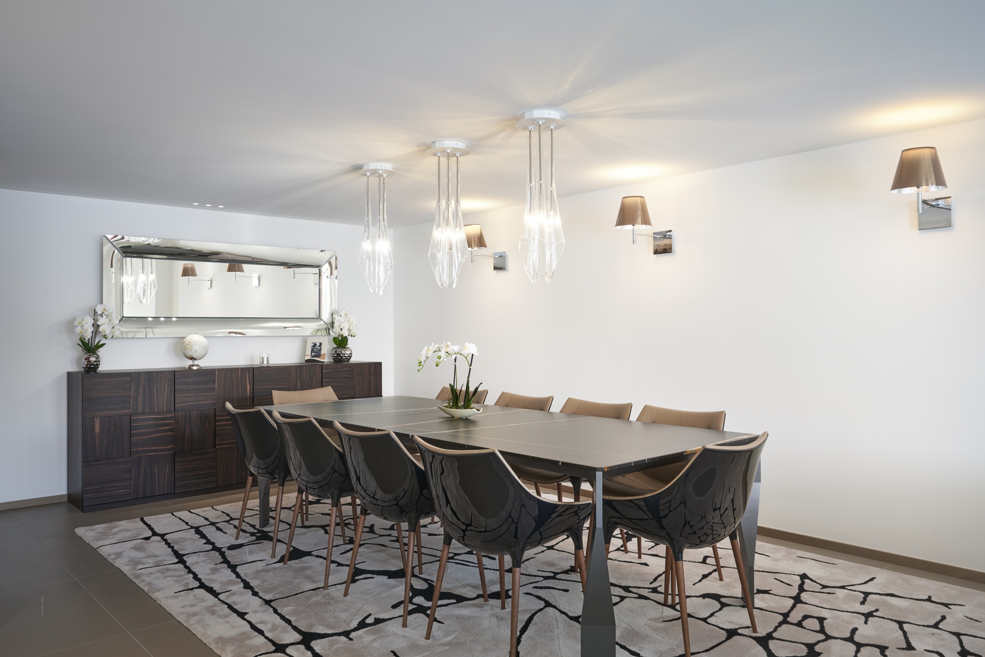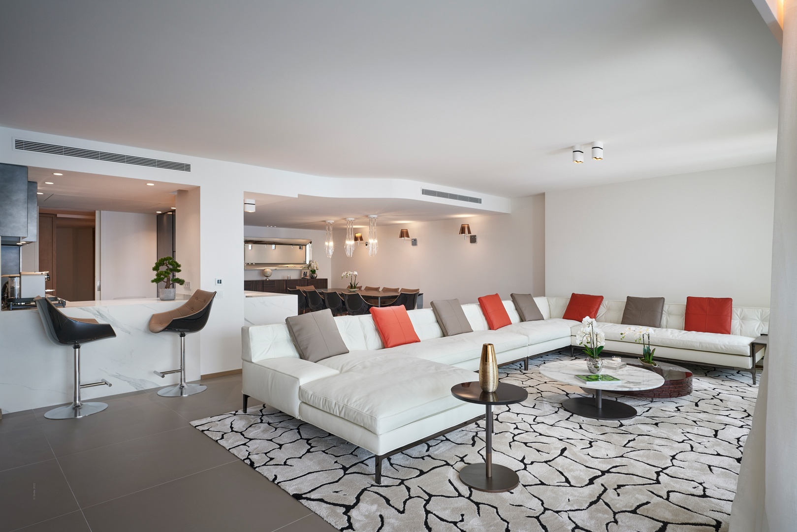 Extérieurement, la résidence est une beauté architecturale avec sa façade en verre et en métal léger qui se fond dans le paysage et créée un sentiment aérien. Elevé sur cinq étages, le First Croisette dispose d'une gamme d'appartements luxueux à vendre et à louer, allant du trois au cinq pièces avec vue sur la mer et incluant des prestations modernes. De plus, la résidence comprend un appartement de luxe contemporain de six chambres disponibles à la location, avec une terrasse arrondie, une vue sur le port et un grand espace pour se divertir dont un espace de réception, une salle à manger spacieuse pour 20 personnes et une cuisine professionnelle.