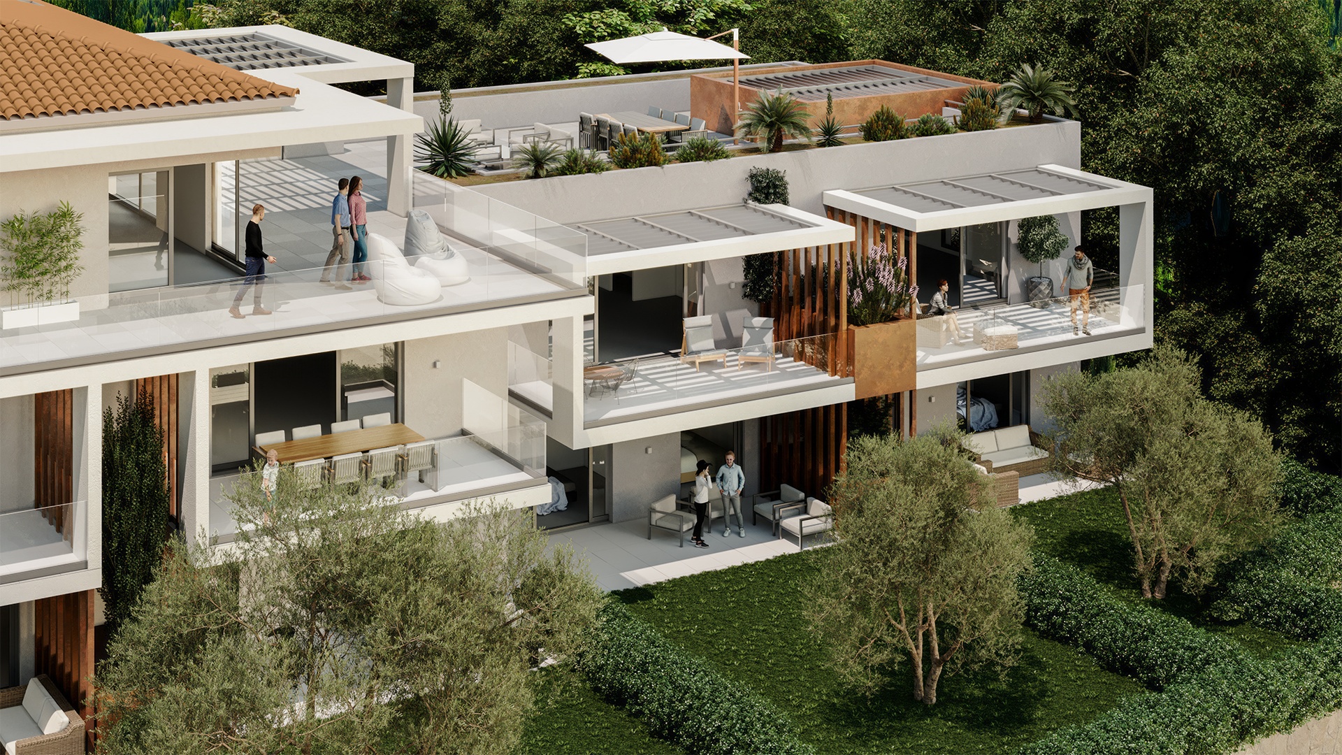 Les vastes terrasses accessibles depuis toutes les pièces de vie permettent de profiter à l’envi et en toute saison du soleil de la Côte d’Azur. Chaque villa/appartement duplex a été conçu pour favoriser le confort et le bien-être de ses occupants et bénéficie des derniers standards de construction, de matériaux de qualité et de prestations soignées.