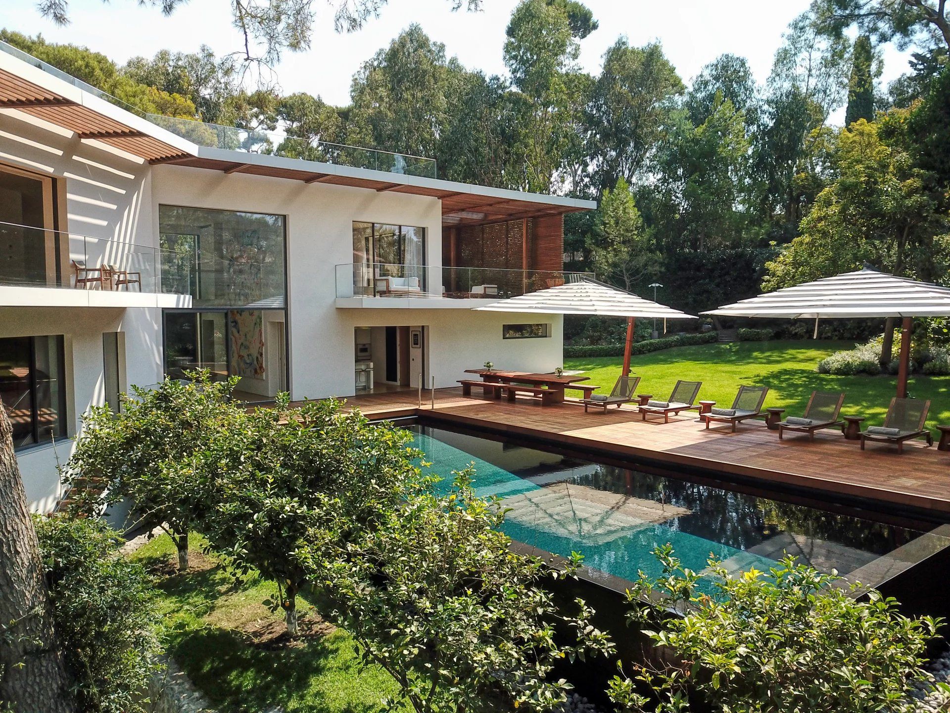 Une piscine chauffée invite à la détente, tandis qu'une cave à vin apporte une note de sophistication. Cette résidence incarne véritablement l'essence de l'opulence et de la tranquillité sur la Côte d'Azur.