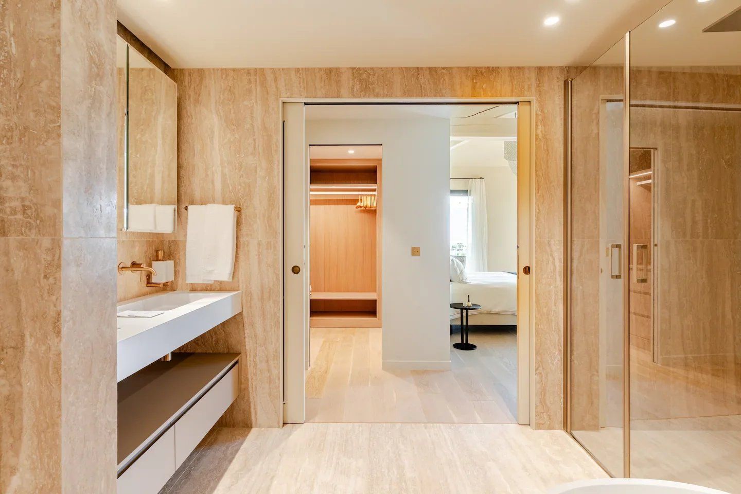 L’étage supérieur est réservé à une chambre principale luxueuse, avec un grand dressing, une salle de bains privée, et deux terrasses offrant des vues panoramiques envoûtantes sur la Méditerranée.