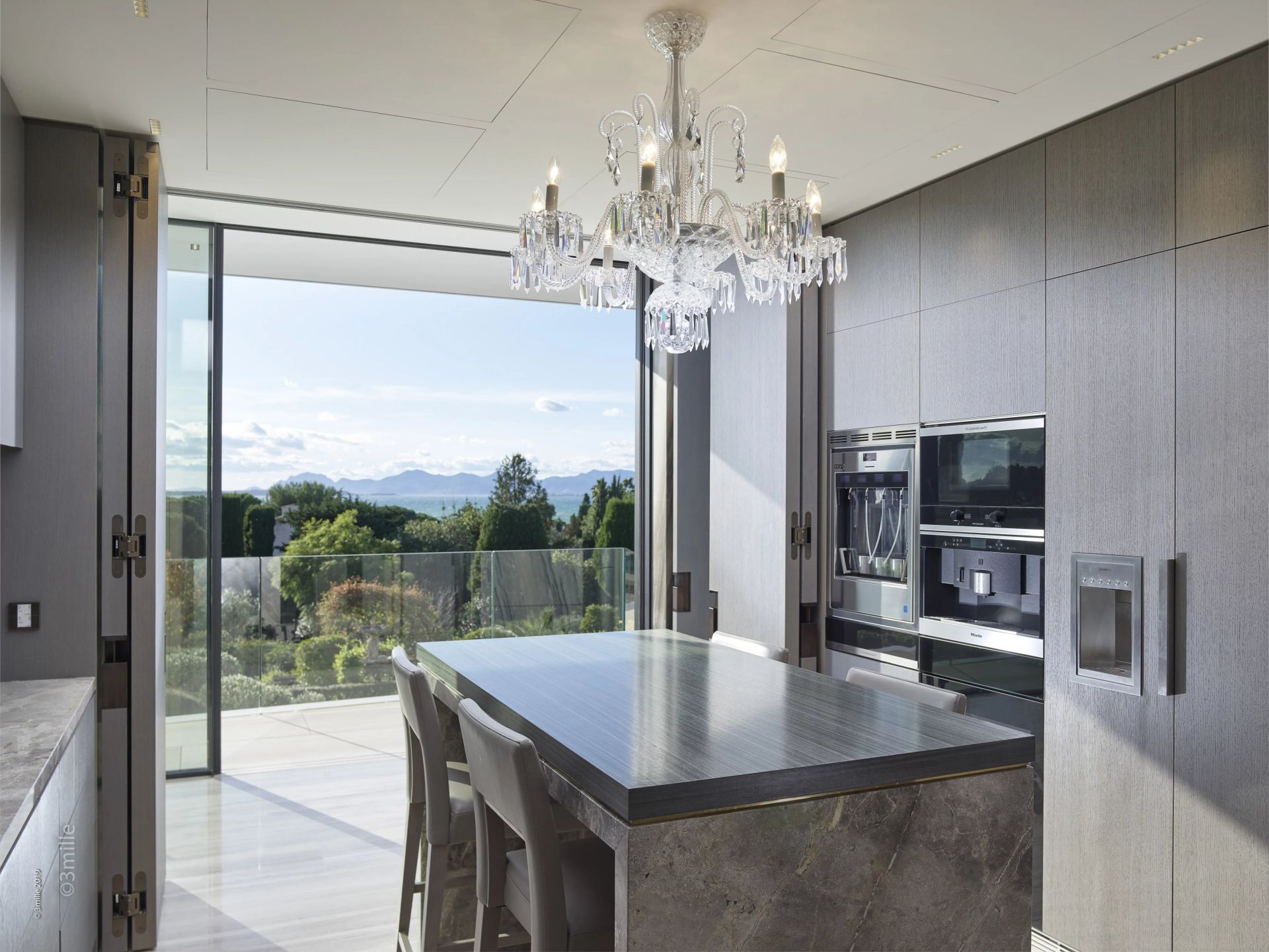 La villa principale comprend une spacieuse salle de réception avec coin repas, ouvrant sur une terrasse avec Jacuzzi, une magnifique suite principale avec salle de bains, toutes offrant une vue imprenable sur la mer, une cuisine entièrement équipée et une grande terrasse avec cuisine d'été et coin repas.