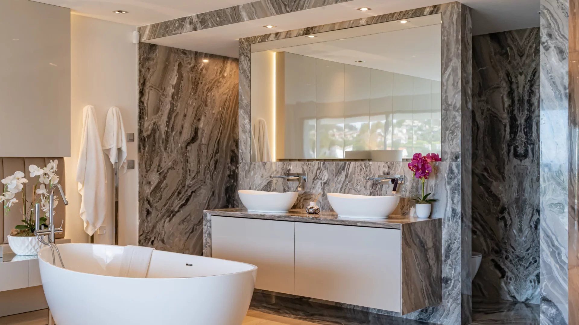 Le confort de cette villa de luxe est renforcé par un chauffage au sol dans les pièces de vie, ainsi que par la climatisation réversible.