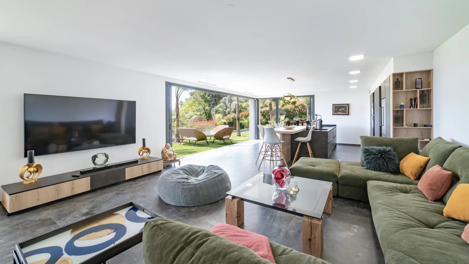 À Mougins, au cœur d’un quartier résidentiel très prisé, cette maison contemporaine neuve bénéficie d’une vue dégagée et dominante sur les collines environnantes. Conçue dans un esprit moderne et épuré, elle offre un cadre de vie lumineux et harmonieux dans un environnement calme et verdoyant. Édifiée sur deux niveaux, avec un étage sur rez-de-jardin, elle propose à l’étage une entrée desservant deux chambres en suite avec salles d’eau privatives, un dressing, des toilettes indépendantes ainsi qu’un balcon offrant une agréable ouverture sur le paysage. Le niveau principal s’ouvre sur un spacieux espace de vie comprenant un séjour lumineux et une cuisine américaine entièrement équipée, deux nouvelles suites avec leur propre salle d’eau, un second WC séparé ainsi qu’une buanderie pratique. À l’extérieur, le terrain paysager soigneusement aménagé dispose d’une cuisine d’été intégrée, idéale pour recevoir en toute saison, ainsi que d’une piscine hors sol apportant fraîcheur et détente. Ce bien rare combine prestations contemporaines, volumes généreux et qualité de vie, à quelques minutes seulement des commodités, des écoles et des axes principaux.