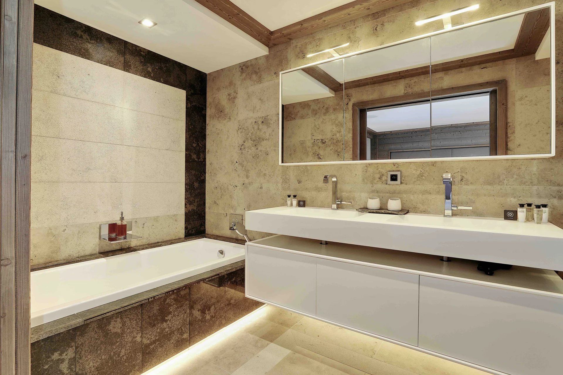 Résidence de standing avec spa, piscine, salle de sport, conciergerie 24h/24, navettes, ski shop, club lounge, ski lodge au bas des pistes et parking souterrain.