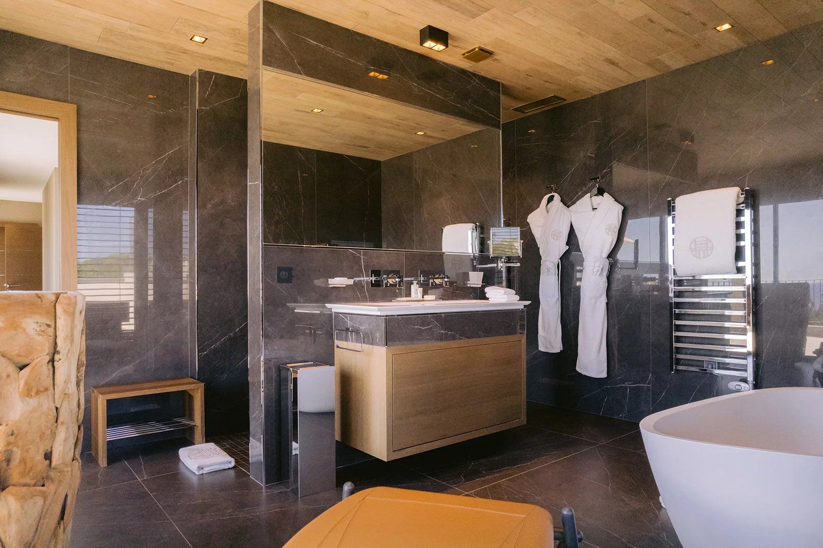 Cette propriété exceptionnelle se compose d'une résidence principale majestueuse et de deux annexes distinctes, chacune offrant une vue imprenable sur l'horizon marin.