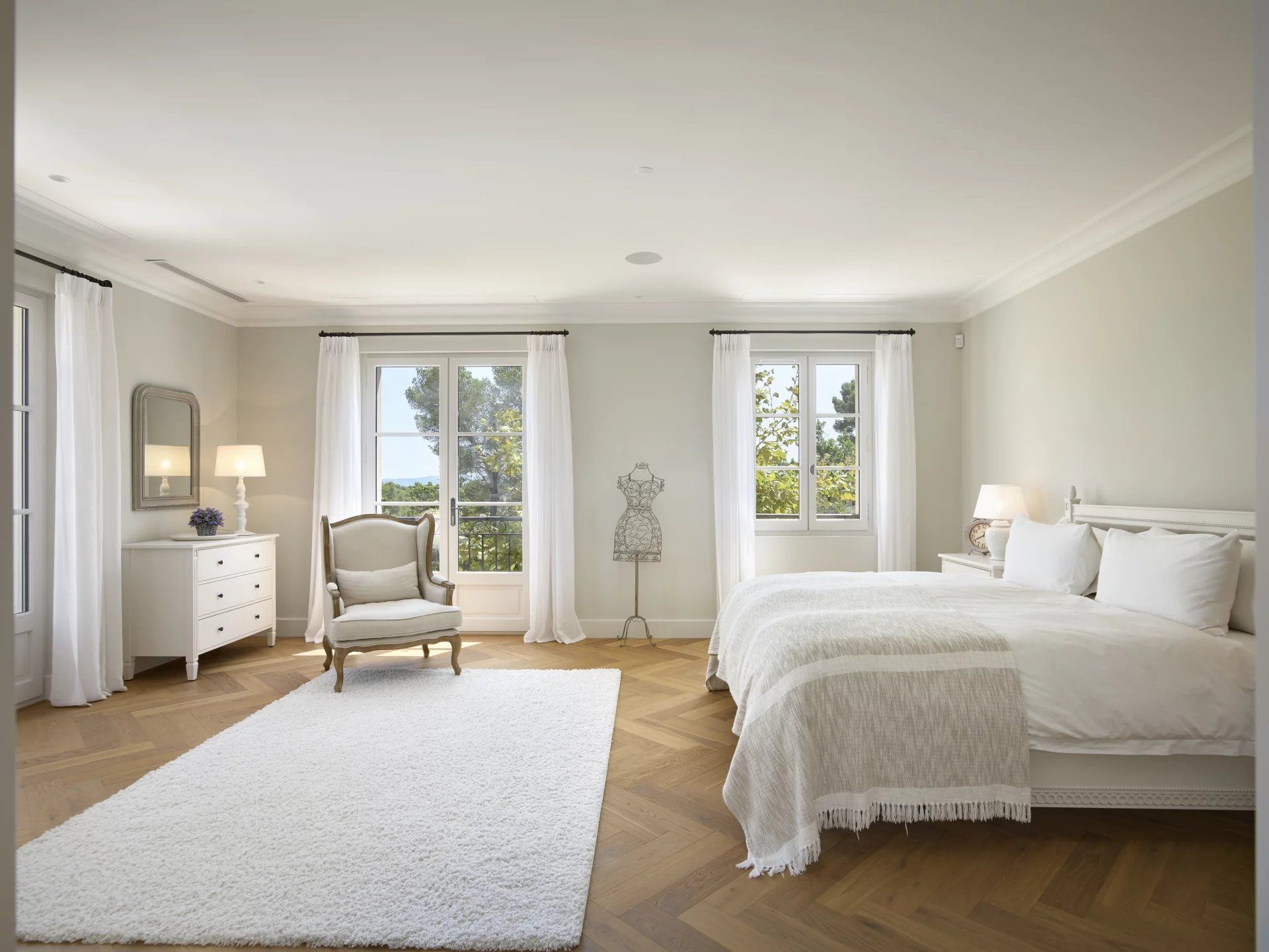 Les jardins paysagers, soigneusement aménagés, mènent à une élégante piscine miroir et à un terrain privé de pickleball, un atout rare qui confère un caractère exclusif à l’ensemble. Entouré de verdure, le domaine garantit intimité et quiétude. À l’arrière, la bastide en pierre, ornée de volets gris clair, incarne l’architecture traditionnelle du Sud tout en intégrant discrètement des prestations modernes haut de gamme.