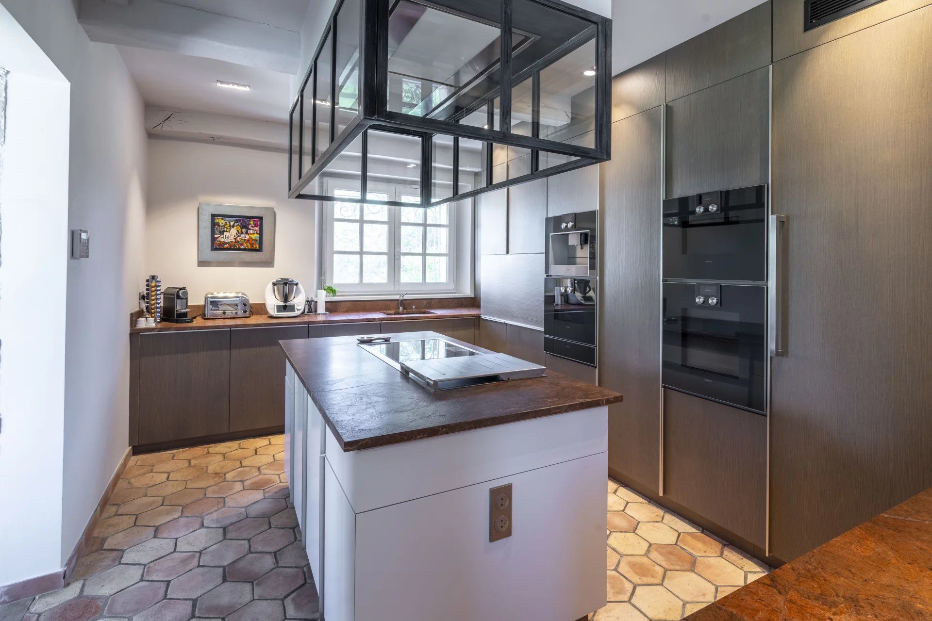 Elégante et parfaitement équipée, la cuisine signée Gaggenau offre un équilibre subtil entre esthétisme et fonctionnalité. Pensée pour s'adapter à tous les styles de vie, elle peut être ouverte sur le séjour ou isolée pour plus d'intimité lors des réceptions.
